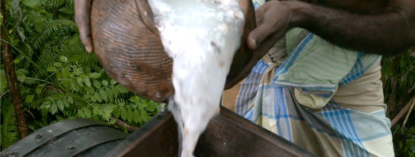 The initial step in the process of making coconut arrack is toddy tapping, an age-old vocation which is lovingly passed down from father to son. Toddy Tapping is as much an intricate art as it is a science. Toddy tappers manually extract the toddy from coconut trees which are coupled and girdled by deftly rappelling from tree to tree. Coconut sap or toddy is obtained by tapping the unopened coconut flower for its nectar. Thereafter, the toddy is collected in earthenware pots. This toddy when fresh contains much sugar, but yeasts, microscopic vegetable organisms soon find their way into it, act on the sugar present and produce alcohol. This process of converting the sugar into alcohol is called fermentation.